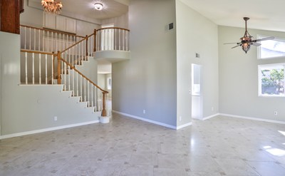 Welcome to your beautiful new home located in Canyon Crest. This home offers a 3 car garage with direct access to the house. With 3 bedrooms all located upstairs with 2. 5 bathrooms. As you enter the home, you will love the sunlight and soaring ceilings. The formal living and dining room areas, offers plenty of space for entertaining. The newly remodeled kitchen is bright with natural lighting, new appliances, quartz counter tops, breakfast bar and a kitchen dining area. The family room features a wood burning fireplace to cozy up on cold nights. The laundry room is spacious with a door accessing outside to the backyard. Heading upstairs, there is plenty of storage in the hallway. The Primary room offers a walk-in cedar closet. Primary bathroom has a dual vanity allowing 2 people to get ready at the time. If you enjoy entertaining, the backyard offers a covered patio with lush green grass. With this oversized lot, you have plenty of room to add a pool, make a garden, possible side yard could be made into additional parking. The possibilities are endless to making this house your home.