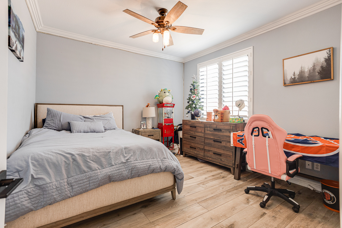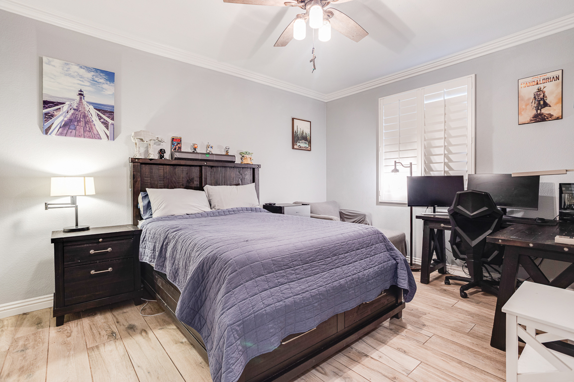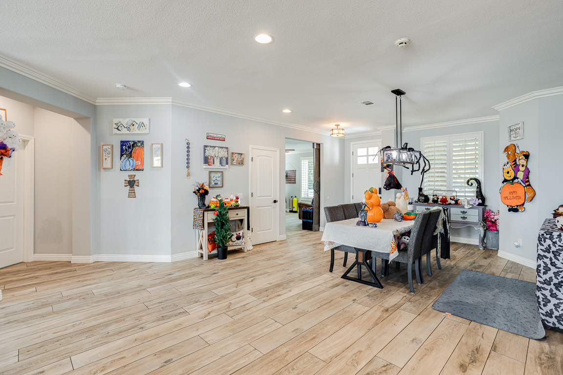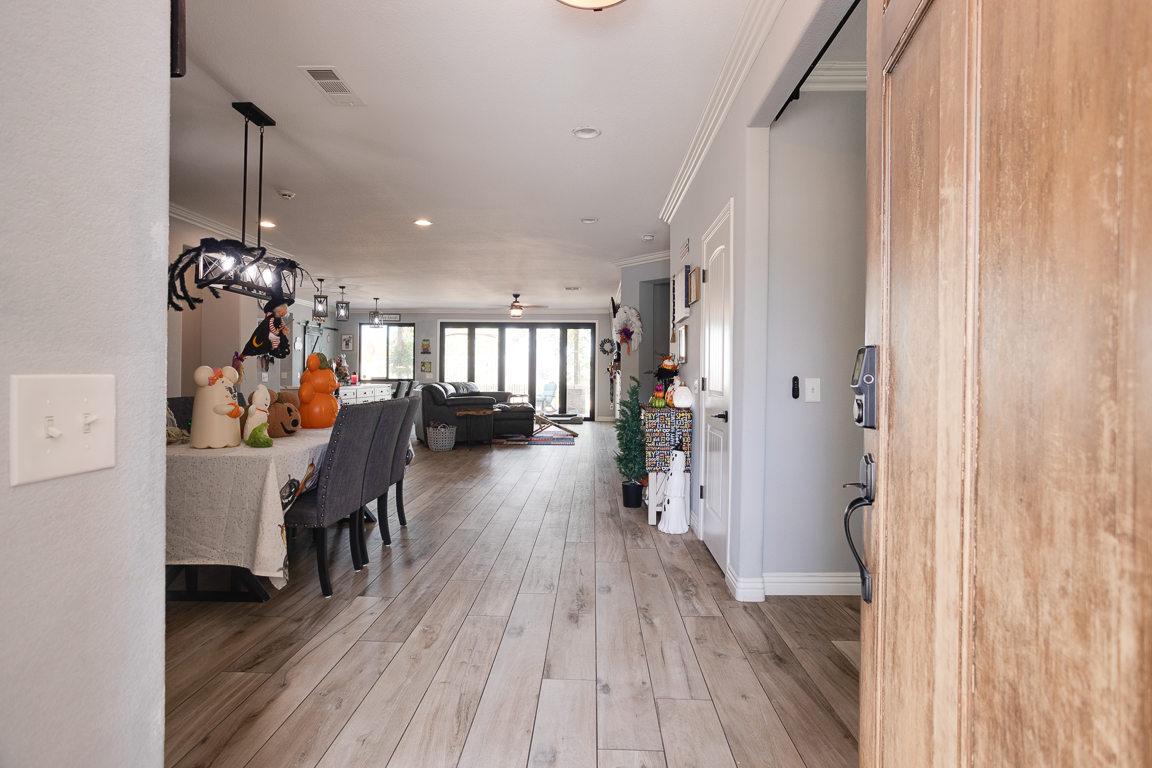 Rare Find in Eagle Glen – Elegant Single-Story Retreat! Discover this exceptional single-story treasure in Corona’s prestigious Eagle Glen community. Offering approx. 2,617 sq. ft. of customized living space, this 4-bedroom, 2.5-bath home rests on an expansive 13,000+ sq. ft. lot—a perfect blend of sophistication, comfort, and contemporary design. From the moment you arrive, the drought-tolerant landscaping and impressive three-car garage with upgraded dual doors set the stage for what lies within. Step inside to an open-concept floor plan that radiates luxury and warmth. The formal living room welcomes guests in style, while the designer kitchen shines with high-end cabinetry, quartz countertops, a large center island with seating, and a pantry accented by a sliding barn door. Overlooking the family room, the kitchen flows into a space highlighted by custom built-ins and a cozy fireplace—creating the perfect setting for entertaining or relaxing. A flexible room currently used as an office or gym is separated by a modern barn door, offering both versatility and privacy. On one wing, you’ll find three spacious bedrooms, an upgraded full bath with dual sinks and quartz counters, plus a stylish laundry room and guest powder bath. The privately situated primary suite serves as a peaceful retreat. French doors open to the serene backyard, while the luxurious en suite bath features a massive walk-in doorless shower, quartz counters, and spa-quality finishes. Throughout the home, rich tile flooring, upgraded baseboards, designer paint, enhanced lighting, and ceiling fans create a cohesive, refined aesthetic. Step through the collapsible glass doors to an entertainer’s dream backyard. The covered patio offers panoramic city-light views, while the sparkling pebble-tech pool and spa—framed by new tile—set the tone for resort-style living. A second covered patio adds even more flexibility for gatherings or quiet evenings under the stars. Every inch of this home has been curated for beauty, function, and relaxation. Located within Corona’s premier golf course community, Eagle Glen offers a championship course, clubhouse, and pickleball courts. With nearby shopping and dining at Bedford, The Crossings, and The Shops at Dos Lagos—plus easy freeway access—this is a rare opportunity to own a fully customized single-story masterpiece in one of Corona’s most desirable neighborhoods.