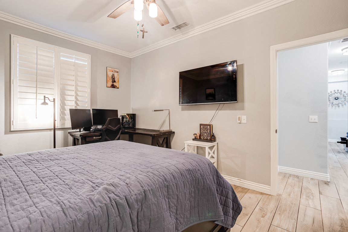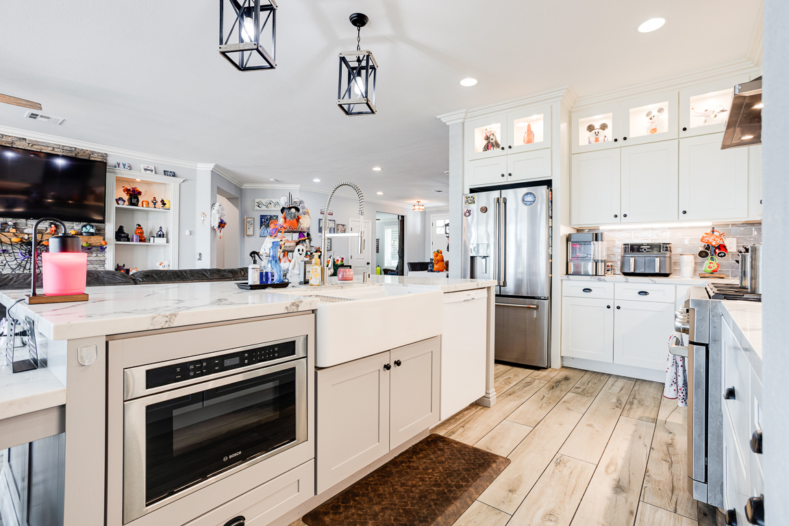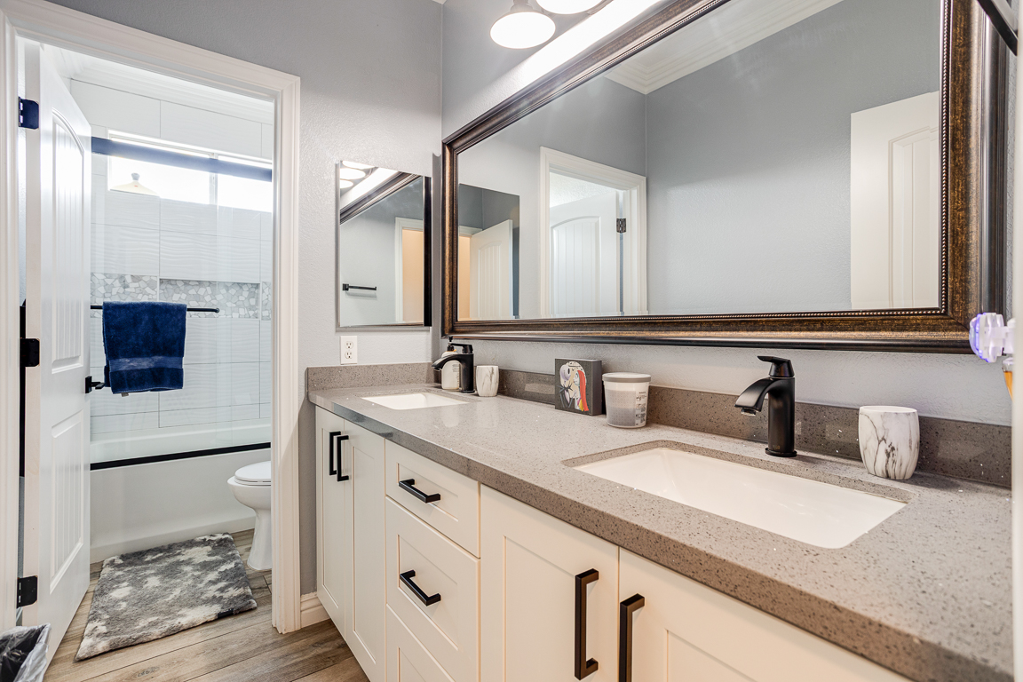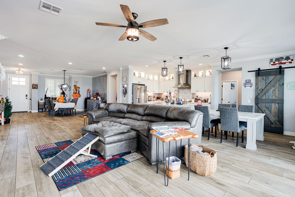Rare Find in Eagle Glen – Elegant Single-Story Retreat! Discover this exceptional single-story treasure in Corona’s prestigious Eagle Glen community. Offering approx. 2,617 sq. ft. of customized living space, this 4-bedroom, 2.5-bath home rests on an expansive 13,000+ sq. ft. lot—a perfect blend of sophistication, comfort, and contemporary design. From the moment you arrive, the drought-tolerant landscaping and impressive three-car garage with upgraded dual doors set the stage for what lies within. Step inside to an open-concept floor plan that radiates luxury and warmth. The formal living room welcomes guests in style, while the designer kitchen shines with high-end cabinetry, quartz countertops, a large center island with seating, and a pantry accented by a sliding barn door. Overlooking the family room, the kitchen flows into a space highlighted by custom built-ins and a cozy fireplace—creating the perfect setting for entertaining or relaxing. A flexible room currently used as an office or gym is separated by a modern barn door, offering both versatility and privacy. On one wing, you’ll find three spacious bedrooms, an upgraded full bath with dual sinks and quartz counters, plus a stylish laundry room and guest powder bath. The privately situated primary suite serves as a peaceful retreat. French doors open to the serene backyard, while the luxurious en suite bath features a massive walk-in doorless shower, quartz counters, and spa-quality finishes. Throughout the home, rich tile flooring, upgraded baseboards, designer paint, enhanced lighting, and ceiling fans create a cohesive, refined aesthetic. Step through the collapsible glass doors to an entertainer’s dream backyard. The covered patio offers panoramic city-light views, while the sparkling pebble-tech pool and spa—framed by new tile—set the tone for resort-style living. A second covered patio adds even more flexibility for gatherings or quiet evenings under the stars. Every inch of this home has been curated for beauty, function, and relaxation. Located within Corona’s premier golf course community, Eagle Glen offers a championship course, clubhouse, and pickleball courts. With nearby shopping and dining at Bedford, The Crossings, and The Shops at Dos Lagos—plus easy freeway access—this is a rare opportunity to own a fully customized single-story masterpiece in one of Corona’s most desirable neighborhoods.