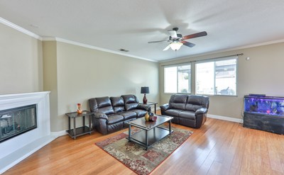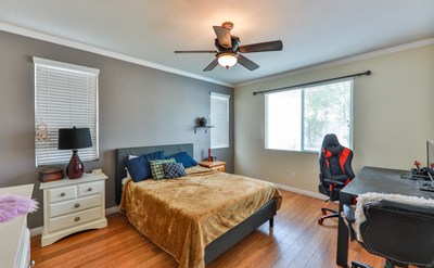 Gorgeous single story 4 bedroom home with drought resistant landscaping located close to the 74 & 79 hwy. Thoughtfully landscaped front yard balances beauty & environment w/drought tolerant landscaping. Owned by the original owner, this home shows pride of ownership with bamboo flooring & crown molding throughout the home. The entryway opens to the formal living and dining rooms as well as a front bedroom and full bathroom, perfect for guests. The space opens to the large family room w/entertainment center featuring slate rock accent wall w/TV mount (stays) & recessed cable boxes to hide all the wires plus gas fireplace. The kitchen opens to this space and features granite tile counters, recessed lights, large kitchen island w/seating, brand new microwave & tons of storage + spacious eating area & sliding glass door to the backyard. The master bedroom is spacious w/master bathroom featuring separate tub & shower, walk in closet & dual sinks, the remaining 2 bedrooms are equally spacious w/large closets & lighted ceiling fans & share the hall bathroom. The backyard is as beautifully landscaped as the front yard & features fruit trees such as Asian Pears, Pomegranate, Lime & more all of which you can eat & enjoy under the custom pergola cover.