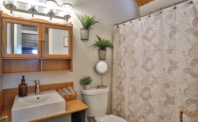 It features two bedrooms 1 bath that could sleep up to 8 people. Bedroom #1 with queen size bed. Bedroom # 2 has a triple bunk bed and a futon that turns into a additional bed. Living room with fireplace and full size sofa bed couch. Fully equipped kitchen. Walk out to our patio and enjoy the beautiful weather of Arrowbear while you enjoy your morning coffee.