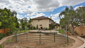 This elegant Belmont Equestrian estate offers five bedrooms and spacious office/den, three in a half baths, and a cathedral ceiling living room in a private, quiet cul-de sac on a large flat 39,400 lot. Spacious kitchen boasts granite counters, large island with breakfast bar and recessed lighting. Master retreat with stone fireplace. Double walk-in closets, separate tub and dual sinks in master bath. Entertain your guests in an extravagant backyard with a large patio, built-in BBQ, picturesque garden, tranquil fountain, playground and basketball court. A quaint, trellised vineyard feat...ures Cabernet Sauvignon, Merlot, Pinot Noir and table grapes. Incredible four stall Castlebrook stable including one stall with folding wall to allow for foaling corral, 16x16 tack room, covered wash area with hot and cold water, covered grooming and saddle area with electrical outlets, automatic fly-control system, a thirty six foot pen and area for turn-out corral. Easy access from rear gate to major trail connecting three cities and a city-maintained pony trail. Close proximity to Victoria Gardens mall, performing arts center, public library and great schools.