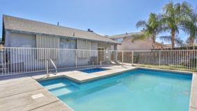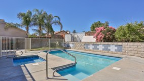 Great two story home in West Hemet! This large home sits at the end of a cul-de-sac street and features a sparkling pool in the backyard! There is room for everyone in this home! New paint and new laminated wood floors throughout! Tall ceilings greet you as you enter into the living room. The family room has a fireplace. The kitchen has a convenient center island and is open to the family room. There is a full bathroom downstairs. Laundry room with overhead cabinets is located downstairs. All 4 bedrooms are upstairs. The master bedroom feels like a retreat. Master bathroom has a separate tub and shower. The other 3 bedrooms are good sized. There is another full bathroom upstairs as well. The oversized garage is the perfect place to park your car. The backyard is large and features a sparkling inground pool. Make this home your first stop!