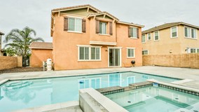 Beautiful 2 story home nestled in the highly desirable Eastvale community. This home boasts 4 bedrooms 2.5 baths and a huge upstairs loft. Entering the home a formal living and dining area welcome you with wood flooring and high ceilings giving the home a large look. The sizable kitchen is great for cooking and features black appliances, a double oven, kitchen island, granite counter tops and windows overlooking the backyard. A warm family room with tile faced fireplace adds heat to these cold winter days. Easy access to a downstairs laundry room and half bath. Recessed lighting and built in surround sound is a plus. Bedrooms have plenty of closet space, window views and recessed lighting. Shareable upstairs bathroom has a double granite sink vanity, large vanity mirror and in tub shower. Entering the double doors into the master bedroom, there is a private master bath, with a tile standup shower, bathtub to relax in, double sink vanity and huge walk in closet. The loft has a vast amount of space and can be converted into an entertainment room or room of your choice. If a pool is what your looking for this home has it along with a spa and huge backyard. Near large community parks, Eastvales high rated schools, shopping centers and easy fwy access.