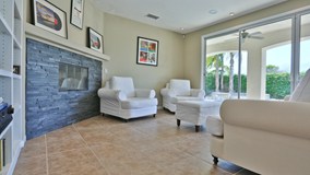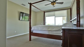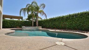 Highly upgraded home located in the Gated Community of Cimarron Cove. The property features a sparkling blue pebble tech pool and spa, Covered patio with surround sound out door speakers and ceiling fans. From the Living room you have a beautiful sweeping mountain views and golf course view from the upper balcony deck. The living room has a oversized sliding glass door which was added to create a out door in door living atmosphere perfect for those beautiful desert nights. The master shower was also upgraded with dual shower heads as well as a rainfall shower. With 4 bedrooms and 3 baths at 2,283 sq. feet. This property is perfect for a full time resident or vacation home.