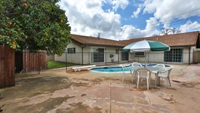 vaulted ceiling in the living room, fruit trees in the backyard, and pool with a jacuzzi spa just steps off the master bedroom, this is a fantastic home in a fantastic neighborhood.