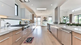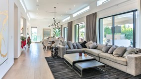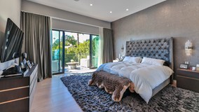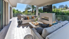 Located just north of Sunset behind the Beverly Hills Hotel, this beautifully designed ultra modern smart home, has walls of glass, an open floor plan, and an abundance of light. The living area has a terrific indoor/outdoor flow with 12 foot ceilings, multiple seating areas, and fireplace. Embracing the California lifestyle, the upper outdoor deck runs the length of the living area and overlooks the pool. The State of the Art kitchen comes equipped with Miele appliances. Enter the Master Suite by way of a floating staircase which features its own outdoor patio, walk in closet and an ensuite Master Bath retreat. On the lower level, there are 3 ensuite bedrooms along with a theatre/media room. Enter the outdoors from any of these rooms and relax by the pool in luxury and tranquility and just enjoy the outdoor fireplace.