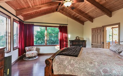 Charming rustic 3BR/2BA home (3rd BR is office) has an open floorplan, and a loft totaling approximately 2317 square feet of living space. Numerous balconies and decks take advantage of unobstructed westerly and Lake Sherwood views.