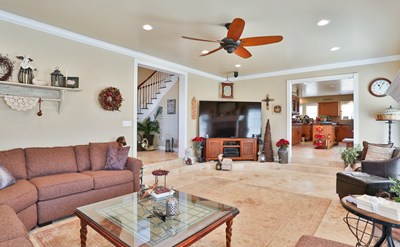 Welcome to this stunning 4-bedroom 4.5 bathroom fully custom, Country French home located in beautiful, quiet and serene Juniper Hills. Right through the front door an amazing spiral staircase within the beautiful foyer. A beautiful open concept living room with stunning travertine stone flooring, recessed lighting, wired for surround sound and upgraded window treatments. Brand-new wood pellet stove. The large dining room, with enough space to entertain approximately 12 people comfortably. Beautiful kitchen with Viking hood, range and dual oven. Built-in stainless steel fridge, one main sink, a vegetable sink, center island with granite countertops, recessed lighting, custom backsplash, custom cabinets with under cabinet lighting and too many other features to list here. Game room with built-in wet bar, mini fridge and fireplace. Downstairs bedroom with ensuite bathroom. Upstairs, a master bedroom with large walk-in closet and ensuite bathroom with dual basin vanity, large cast-iron and porcelain soaking tub, fireplace, above mantel television, large walk-in shower an additional master bedroom retreat/ reading room. Also upstairs, there is two additional bedrooms. Furthermore, there is an additional full shared bathroom. A huge balcony, with expansive and panoramic views of the Angeles Forest Mountains and Antelope Valley City Views. Last but not least the enormous 1650sqft garage/ Man cave with separate bathroom. The home has it all. A must see!