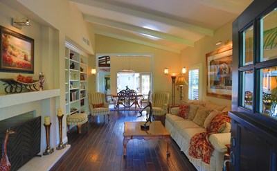 Located in Bungalow Heaven, this home was completely remodeled in 2011, every detail thoughtfully planned & exquisitely executed, including plantation shutters throughout. The charming street presence leads to the inviting porch & into the living room, with beautiful fireplace & vaulted ceiling & opens to the dining area with double doors to one of several outdoor entertainment areas. The kitchen has stone counters, top-end appliances & vaulted beamed ceilings. The family room has generous shelving & a surround sound system & the finished basement functions as a wine cellar w/ full rack system for wine. The spacious Master Bedroom has private patio access & well-designed walk-in closet featuring a center island & stunning ensuite bath with freestanding tub, oversized shower & sound system control pad, part of the 6-zone system. The guest wing has 2 generously sized bedrooms & a full bath. The resort-like landscaped backyard features a free-standing gas fireplace, heated salt-water pool & spa & back patio dining area w/ wall fireplace - perfect for al fresco dining. There is also a pool house with living area, kitchenette, full bath, HVAC system & bonus space that could be used as a home office, play area or storage. Don’t miss this magical bungalow oasis!