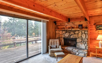 Experience the best of mountain living with this cozy gambrel in the Whispering Forest area of Big Bear City, right on the edge of the national forest! Could starting your next adventure be any more convenient? This spot has amazingly easy access to the boat launch, ski slopes, hiking trails (including the epic Pacific Crest Trail), restaurants, shops, and even the post office. Imagine pulling up to your new home or vacation investment property with those tall, beautiful evergreen trees rising above you in greeting. The open beams and natural, knotted-pine ceiling inside provide a cozy atmosphere to revive your soul and make great memories. Enjoy a warm fire in the stone fireplace while taking in the mountain view from the living room. A full bathroom upstairs and one downstairs make it easier to freshen up after all that outdoor fun. The laundry room is conveniently located upstairs with the bedrooms and also offers some extra storage space. Above the garage, there is an unfinished 3rd bedroom that’s over 400 square feet. A permit was pulled when the work was started, and with a new permit, the 3rd bedroom could be finished, adding substantial value to the property both for future resale and for vacation rental potential. With over 11,000 square feet of land, it’s worth looking into building an ADU or expanding the existing house further. You’ll enjoy the convenience of the circle driveway, direct garage access from the house, and the motorized garage opener. Two decks with built-in benches and a large, flat yard offer plenty of space for parties and other gatherings both large and small. Welcome home!