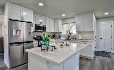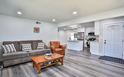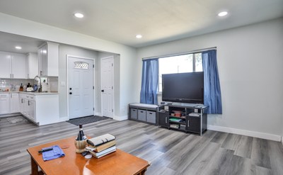 Welcome to this beautifully remodeled Single Story 4-bedroom, 2-bathroom pool home on a desirable corner lot. This inviting property blends modern elegance with thoughtful design, perfect for families and entertainers alike. Recent upgrades include a tile roof, dual-pane windows, concrete driveway, luxury vinyl flooring, updated kitchen and bathrooms with new cabinets and quartz countertops, LED lighting, millwork, and new interior doors. Step inside to an open floor plan connecting the living, dining, and family areas, creating a bright, airy feel. The remodeled kitchen features sleek white cabinetry, stainless steel appliances, and plenty of counter space. The cozy family room with a charming fireplace is perfect for cooler evenings, and large windows fill the home with natural light. Outside, enjoy your private oasis with a sparkling pool and spacious backyard, ideal for summer gatherings. The attached garage provides convenient parking and storage. This corner-lot treasure offers comfort, style, and functionality, ready for you to call it home.