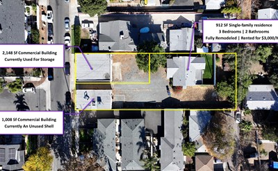 This property offers an investor or developer the chance to build up to 10 residential units in a prime Altadena location just 5 minutes to shops, dining, and the 210 freeway. The property consists of two lots totaling 13,973 SF with three buildings. The two front buildings are commercial (1,008 SF and 2,138 SF), and there is a 912-SF, craftsman, 3-bed, 2-bath, fully remodeled, single-family home in the back. Max out the development and then sell for a profit, or hold it for long-term cash-flow. The $139,660 per year average household income within a one-mile radius provides a strong capacity for premium rents. A detailed review in a meeting with a Los Angeles County planner confirmed that an 8-unit apartment building could be constructed on the front, C2-zoned portion of the property without a conditional use permit. On the R2 portion, another unit could be built to create a duplex. In the wake of the Eaton Fire, which destroyed thousands of homes nearby, community members want to move back, but there aren’t enough available rental units in the area. Building nine more units can meet a big need in a disaster-impacted community while creating a strong investment return. 2-Bedroom units currently command between $2,800 and $3,100 per month in the area, and 1-bedroom units fetch $2,100 to $2,400 a month. 3-bed, 2-bath duplex units will rent for between $3,400 and $3,700 a month. The existing single-family home can provide revenue during preconstruction, and the two commercial buildings offer additional options. All the structures are vacant, so you can get started implementing your vision right away. With stabilized annual revenue between $317,000 and $353,000 and multi-family properties selling at capitalization rates between 4.5% and 5.0%, the property would be worth between $4.9M and $5.5M.