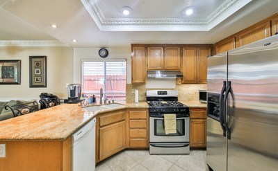 Featuring 3 bedrooms, 2.5 bathrooms + spacious patio with a built-in patio cover and connections for a tv and overhead fans. Walk through the private gate into an open courtyard before entering an open and well-lit living room. Hang a right and step into the beautiful kitchen featuring granite counter tops and connecting dining room. Stop by to see the first-floor half- bathroom before heading upstairs to the bedrooms. Enter the gorgeous master bedroom complete with vaulted ceilings and solid surface flooring. Check out the connected bathroom with mirrored closets, dual above counter sinks and plenty of counter space! Step down the hallway over to the second and third bedrooms included with ceiling fans in each and well-preserved carpets. Don’t forget to see the 2nd full bathroom in the upstairs hallway on your way to the 2nd and 3rd bedrooms. The summer heat doesn’t have a chance with this 3-year-old Lennox 5-ton A/C unit, keeping the entire house cool and comfortable. Relax and host guests outside with the covered patio, grass and beautiful landscaping. Turn on the TV on the porch to entertain guests while you’re hosting. Step back through the kitchen or alongside of the house and enter the spacious 2 car garage with a BRAND-NEW garage door.