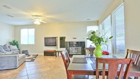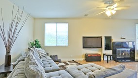 Welcome Home! This 5 Bed, 3 Ba home has it all, Size, Location, View! Located at the end of a Cul-de-Sac and within walking distance to elementary school. Enter this home through double door entry to a fantastic open floor plan. High ceiling and tons of light in the living room and dining area makes this home bright. Nicely equipped kitchen with granite counter tops, island with wine rack. Kitchen overlooks the large family room, perfect for watching movies with the built-in surround sound. Extra large main floor bedroom with direct bath access. Custom shutters and designer tile flooring throughout the downstairs. Inside laundry room with sink and storage cabinets. Spacious master suite upstairs. Double door entry to master bedroom with walk-out balcony for watching the sunrise and enjoying gorgeous mountain views. Master bath with separate tub and shower, dual sinks and vanity area. Large walk-in closet with organizers. In addition, you'll find 3 more good size bedrooms , one with double door entry.