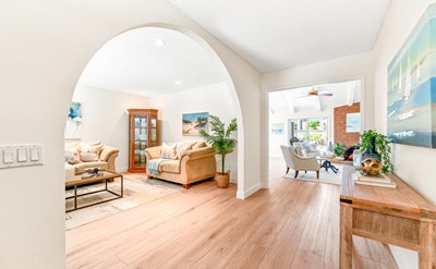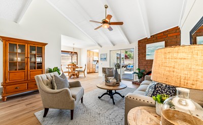 Welcome to this beautifully upgraded single-story home in the highly desirable Golden View neighborhood of Huntington Beach. Larger than most single-story homes in the area, this Franciscan Fountain home features 4 spacious bedrooms, 2 full bathrooms, and a layout designed with both comfort and functionality in mind. Enter through double doors into a welcoming family room, then move into the open-concept living room with soaring vaulted ceilings and a cozy fireplace, perfect for relaxing or entertaining. The home features new laminate flooring, fresh interior and exterior paint, and dual-pane windows throughout, creating a bright, modern atmosphere from the moment you step inside. The nicely appointed kitchen opens to the main living area, ideal for hosting family and friends, while a convenient indoor laundry room adds everyday ease. The generous primary suite offers a peaceful retreat with direct access to the backyard, where you’ll find a pergola and private spa—perfect for soaking under the stars or enjoying sunny coastal afternoons. Located in a serene, well-maintained community just minutes from Central Park, the Public Library, Senior Center, the Equestrian Center, Bolsa Chica Wetlands, and the Beach, this home delivers the best of Surf City USA living. If you're seeking space, style, and location—this one has it all. Don’t miss the rare opportunity to own a move-in ready home in one of Huntington Beach’s most coveted neighborhoods!