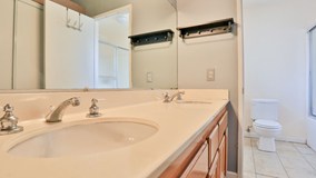 Fantastic home in Ontario's master planned Creekside community! The community features many great amenities, including greenbelts, club house, tennis courts, pools and parks. The brand new front door opens to a grand, high-ceilinged living room with newer carpet, a fireplace, and lots of natural light. All the bedrooms are upstairs with new laminate flooring. The master bedroom features and en-suite bathroom and direct access to the new deck. New windows throughout the house offer better energy efficiency and improved temperature control. Central A/C and heat keep you comfortable year round. Convenient direct access to the garage from the dining area adjacent to the kitchen. Easy access to local freeway, restaurants, stores, Ontario airport, Ontario Mills Mall, Victoria Gardens Mall & Nascar Fontana Speedway. Welcome home!