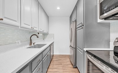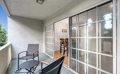 Ideally located just four blocks from Lakeside Country Club, this desirable corner unit offers an open-concept floor plan with a kitchen that flows seamlessly into the dining and living areas, leading to a private patio. The home features an in-unit washer and dryer, two spacious bedrooms, and two full bathrooms. Recent updates include recessed lighting, white quartz countertops, elegant crown molding, and a beautifully renovated primary bathroom. Both bedrooms also boasts a walk-in closet.