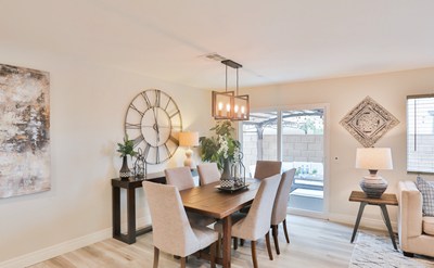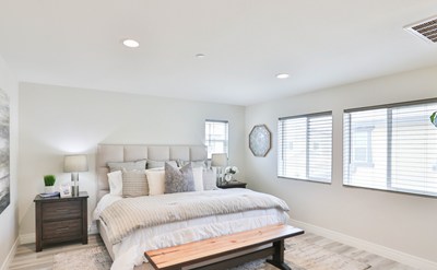 Could this be the perfect floor plan?!? 4 bedrooms, 3 baths with a downstairs bedroom & bath and a huge great room! This remarkable North-facing home resides in the highly regarded Avenida neighborhood in Ontario Ranch. It is virtually brand new with modern architecture and charming appeal. Some features that make this particular home stand out amongst others in the same tract: master bathroom has a new vanity with DUAL sinks (original design only had one sink), Calacatta quartz on all countertops and full backsplash in kitchen (builder had formica counters in kitchen), luxury vinyl plank floorings throughout entire home. The front porch is perfect for enjoying the cooling fall weather outside. Make your way inside to the spacious open living area where the kitchen, dining room, and living room flow together to create the perfect family or entertainment space. Complete with fresh designer paint, dual pane windows, recessed lighting and plenty of natural light this is the perfect space to socialize or just relax. The kitchen features rich cabinets, butler’s pantry, quartz countertops, stainless steel single-basin sink and stainless steel appliances. Downstairs bedroom with bathroom ensuite. Make your way upstairs to the master suite where you will find a FANTASTIC walk-in closet with enough space for everything you can imagine. Two other spacious bedrooms upstairs. Upstairs laundry area. Private yard off dining area with patio canopy & string lighting. Second yard area on other side of home, great for storage! Solar panels, tankless water heater and Quiet Cool for added energy efficiency & savings. Across the street you’ll find a neighborhood park complete with basketball courts, playgrounds, entertainment pavilion and grassy areas to relax and play. Close to Costco, Starbucks & In-N-Out. This opportunity won’t last long so don’t wait. You could celebrate the holidays in your new home!