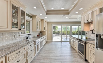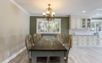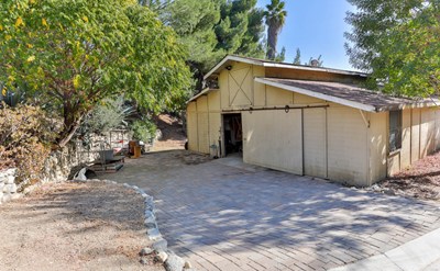 Enjoy country life in the heart of the city in this one-of-a-kind gem. This 4 bedroom 2.5 bathroom home is tucked away on just under an acre of land which features a picturesque barn complete with work space & end to end loft, orchard featuring 7+ kinds of fruit trees & views of the hills with plenty of space to make it your own. The home itself is move-in ready with crown molding, framed windows & doors throughout, ceiling fans in nearly every room, new AC & Furnace (2020) & fully remodeled kitchen (approx. 3yrs). The sunken formal living room has newer carpet while the updated wood-like tile flooring flows throughout the main living area into the stunning kitchen that features beautiful granite countertops, subway tile backsplash, soft-close drawers & pull outs, pot filler faucet, & large peninsula with skylight. The kitchen opens to the dining room to 1 side and the family room with custom built in to the other side. Down the hall features a powder room & tucked behind a pocket door a laundry room. The master bedroom is spacious & features mirrored closet doors, private slider, & fully remodeled bathroom complete with subway tile shower enclosure & vanity with granite. The remaining 3 bedrooms are spacious with mirrored closet doors & lighted ceiling fan. The 2 car garage has been converted to a living space with custom dual raised bunk beds, wall unit AC, lights & ceiling fan, & could easily be converted back to a garage. The backyard has a covered patio & amazing views of the mountains.