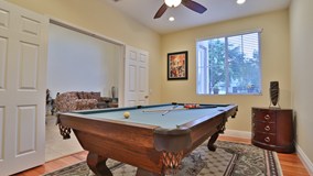 Charming Eagle Glen Pool & Spa Home with tons of custom touches that make it a one of a kind. Up to 6 bedrooms! 4 bedrooms have closets and two others without that can be used as a bedroom/office/den/game room. This home features hardwood & tile flooring, crown molding, baseboards, wainscoting, custom drapes, beautiful built-in media niche with surround sound, stone veneer fireplace, designer chandeliers throughout, ceiling fans and stainless steel appliances. Spacious master bedroom. The master bath has its own door when the other person wants to sleep in. Large walk-in closet. Entertainer's dream backyard with salt water pool & spa. Spa has multi-colored LED lighting. BBQ island with stainless steel BBQ and refrigerator and outdoor 3 speaker stereo system w/ bluetooth. Manicured yards with beautiful lush landscaping. Backyard feels very private. Dog run on the side. Fruit trees. Spectacular views of the Cleveland National Forest. Prior owners converted tandem garage into office and inside laundry room with permits (buyer to verify). Excellent schools, great parks and tons of shopping & dining options very close by. You just may have found your next home...