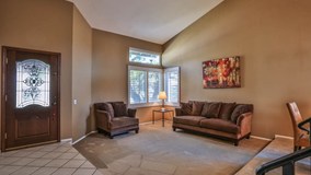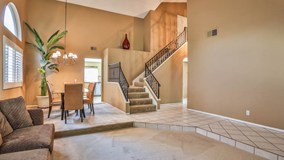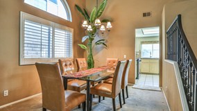 Welcome home! Elegant 4 bedroom 3 bathroom home situated in the highly desirable area of Chino. As you enter through the tiled entry way you are invited by the step-down living room which overlooks the formal dining area, perfect for entertaining. The vaulted ceiling adds to the charming ambiance. The gourmet eat-in kitchen has maple cabinets with stainless steel appliances and granite counter tops. The over sized family room with cozy fireplace, is perfect for all those chilly nights. This open floor plan offers 1 bedroom and 1 full bath on the main floor with plantation shutters throughout. Rod iron staircase leads to master bedroom with vaulted ceilings. Master bath has dual sinks and tub with separate shower enclosure. Enjoy the in-ground spa in large backyard with fruit trees and brand new aluminum wood patio waiting for a gathering with family and friends. House features a 3 car garage. Make this your home, call today!