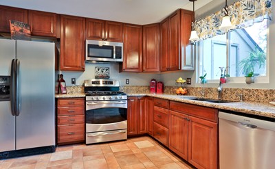 The large kitchen has granite counter and stainless-steel appliance, which look great with newer kitchen cabinets. The large dining area is great for entertaining. The large patio slider door is newer and brings lots of light into the home.