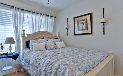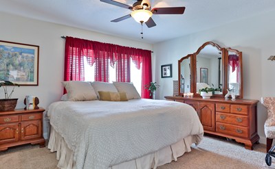 The 2 out of the 3 bedrooms upstairs have the laminate wood like flooring, with mirror closet doors and large double pane vinyl windows. The master has its own private sink and vanity area. Large master bedroom, with mirrored closet doors.