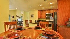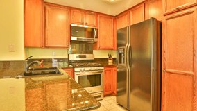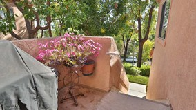 Park and stroll over to this desirable corner unit. Through the front door on your left is the living room with a vaulted ceiling. Check out the views. An upgraded granite surround fireplace accentuates this room. To your right the breakfast bar welcomes you to the upgraded kitchen. It, too, has the same upgraded granite across its counter tops. Off the kitchen is the eating area that nicely finishes off this open concept living area. Through the corridor you find the stacked washer and dryer hidden behind a closet. To your left is the second bedroom. The light and airy feel may cause you not to notice the recessed lights in this room as well. The tastefully upgraded guest bathroom is right outside this room. At the end of the corridor you step into the master bedroom. To the right of the mirrored closet doors is the en suite master bathroom. It, too, boasts upgraded cabinetry. Do not forget to check out the private balcony on the other side of the bedroom. With a storage closet on one side, the other closet houses a surprise- the tankless water heater. Association amenities within this complex are the in-ground spa, kids play area, and paid water and thrash services. No mello-roos and low property taxes just add to a very cozy living arrangement...