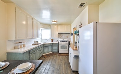 Check out this gem in the Rubidoux community of Riverside! Enjoy your morning coffee or a conversation with a friend on the sweet front porch. The front yard is fenced for safety and features recently-installed, low-maintenance artificial turf. The wooden playset is included if you’d like to have it. Imagine the memories you can make in the large living room. Classic hardwood floors in the living room, hallways, and bedroom provide a warm inviting atmosphere. Cook up a great meal in the shabby-chic kitchen with its newer laminate flooring, and enjoy it in the adjoining dining area. The highly flexible layout includes two bedrooms and a full bathroom in the front portion of the house and a separate suite with a ¾ bathroom and walk-in closet in the back section. The two sections are connected with a large, enclosed patio that functions like additional living space but is not included in the advertised square footage. The layout is perfect for two households living together, roommates, or any other situation where someone would like to live on the same property but also have some independence and separation. On top of the great layout, the house has bonus, private parking along the street that can accommodate two to three cars in addition to the two-car driveway and one-car garage. That’s parking for five to six vehicles total! The two front bedrooms feature great storage with built-in cabinets, and the back bedroom has a cozy fireplace. Central A/C and heat will keep you comfortable during all seasons. The large, fully-fenced backyard with mature trees offers tons of options for creating your perfect outdoor habitat. Stater Bros. Market, West Riverside Elementary, Mission Middle School, Rubidoux High School, Rubidoux Library, and a variety of shops and restaurants are all conveniently located within 5 minutes’ drive, per Google. Enjoy a walk in any of the many nearby parks, including Rancho Jurupa and Jurupa Hills, or play a round of golf at Indian Hills Golf Club all within 10 minutes’ drive. Easy access to the 60 freeway via Rubidoux Blvd means less time driving and more time living. Make sure you check out the video and 3D tours. Welcome home!
