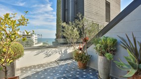Penthouse Style Living at the hip address, the Rockwell. This spectacular two story penthouse style condo boasts reclaimed White Oak Floors, Signature exposed Concrete Walls, custom Chef's Kitchen with Thermador appliances and Waterworks fixtures in every bath. Custom Cabinetry, Marble Counter Tops, Ann Sacks Tile and Natural Stone throughout. French doors open to terraces with ocean views, handcrafted Moroccan cement Tiles, and a Built- in BBQ. The home automation system with built-in audio and lighting control along with Nest Thermostat and Private Security System. The semi-private resident elevator leads to secure underground parking and individual storage units. Nestled into the hillside where Sunset Boulevard meets the Pacific Coast Highway, this luxurious and exclusive residence offer an unexpected living opportunity where the sea meets the sky. Well known for its unique board-formed concrete structure, an iconic building has been the talk of this uncompromised location for years. Today, it has been transformed and reborn. It is called, Rockwell.