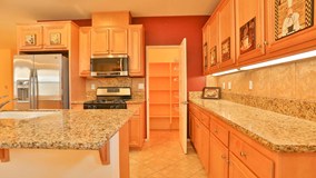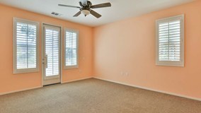 Custom amenities in this very spacious Legends 3 home located facing the 2nd tee box of the Hemet Golf Course surrounding Four Seasons. Oversized patio with stamped concrete and two patio covers perfect for entertaining. Master bedroom has door leading to another front Patio that is covered with awning that re-tracks ideal for