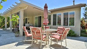 This home is located in 55+ gated 24/7 guarded community and surrounded by the Hemet golf course. invitational 2 model home is open and spacious, has vaulted ceilings, living room, family room, office, 2 bedroom 2 bath, walk in closets , 2 car garage with golf cart space. Loaded with extras; shutters, crown molding, granite counters, nice tiles throughout, new carpets, ceiling fans, water softener & reverse osmosis system. Recently remodeled master bath & shower with glass enclouser. Back yard has full patio, stamped concrete, water falls, low maintenance yard excellent for entertaining. Call on this home today.
