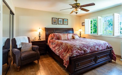 Step through the charming front French doors into a warm, inviting ambiance which draws you to your updated kitchen and private backyard. The kitchen is well appointed with sleek Subzero stainless steel appliances, granite countertops and recessed lighting. Enjoy four spacious bedrooms, including a downstairs guest room, and plenty of storage space. Your primary suite is adorned with natural light, views of your custom backyard and an expanded closet space with professional lighting.