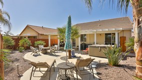 TERRIFIC PROPERTY WITH VERY NICE UPGRADES LOCATED IN 55+ COMMUNITY OF FOUR SEASONS GATED WITH 24/7 SECURITY SURROUNDED WITH HILLS AND HEMET GOLF COURSE. THIS HOME IS OVER 2000 SQ FT 2 BEDROOM PLUS LARGE OFFICE/DEN HIGHLY UPGRADED LAMINATE FLOORING, THROUGHOUT FIREPLACE IN GREAT ROOM SHUTTERS ON WINDOWS GOURMET KITCHEN WITH STAINLESS STEEL AND GRANITE REFRIGERATOR, WASHER, DRYER INCLUDED BACK YARD IS A WONDERFUL RETREAT WITH PROFESSIOANL LANDSCAPING AND SPA VERY PRIVATE LARGE 2 CAR GARAGE WITH BUILT IN CABINETS FOR EXTRA STORAGE AND SEPARATE SPACE FOR GOLF CART PARKING BULIT IN 2010 NO MELLO ROOS TAXES MAKE THIS A MUST SEE