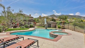 SOLD FOR $920,000.00 A new record during this economy! Entertainer's Delight!This Executive Estate in the Inland Empire's Premiere Golf Course Community "Eagle Glen" oozes Pride of ownership! As you enter the Custom Steel Double Front Doors, you will be consumed by the beauty that is inside! The foyer reveals a custom staircase with elaborate railing and decorative wrought iron (hard, but warm). The designer paint, custom window coverings and tapestries are breathtaking. The "Timberland" laminate flooring and hard wood stairs guide you through the sprawling decadent lower level. The Office, Workout/Den area has its own Courtyard Entry. The Formal Living Room and Formal Dining area are readily visible. The sweeping great room opens up into the Gourmet Kitchen Decorated in White Cabinetry and "Carrera" White Quartz lavishly outfitted with stainless appliances. The down stairs guest bed and full bath and laundry room are also upgraded. At the top of the stairs, one will find bedroom 2, 3 and two additional full baths all highly upgraded. Bedroom 4 is a secondary Master Bedroom with retreat. The Master Suite is at the rear of the home and totally secluded with a retreat, royal in ambiance accompanied by an exquisite Master Bath area and huge upgraded Master Closet. The view from the balcony is breathtaking. The rear yard is an entertainers paradise. Plenty of seating, built in bbq with sink and stainless appliances, the sparkling pool and spa are elegant and the permitted pool house hides the pool equipment.