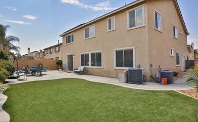 Perfect multi-generational home featuring solar panels that save you $$ all year long + NO HOA. Step into the spacious formal living & dining rooms featuring low maintenance tile flooring & high ceilings that flow into the updated kitchen. The beautiful kitchen features recessed lighting, granite counters, large island with breakfast bar, huge pantry, & spacious eating area. Located just off the kitchen, the huge family room is light & bright with lots of natural light & lighted ceiling fan. The downstairs den is located just off the family room, perfect as an office or guest room. The full downstairs bedroom + full downstairs bathroom is perfect for multi-generational families or frequent guest. The laundry room is huge w/storage, counter space, sink, & direct garage access. The master bedroom is a private sanctuary with a huge master bedroom & equally large retreat. The master bathroom includes dual sinks, shower, soaking tub, vanity, toilet closet, & large walk in closet. The remaining 4 bedrooms are all spacious & feature lighted ceiling fans & all but 1 has mirrored closets. Gorgeous wood laminate flooring flows throughout the majority of the home. Spacious backyard is low maintenance & drought tolerant with beautifully landscaped patio & faux grass with raised patio area, perfect for a BBQ. Other notables are the cost saving solar panels, no neighbors behind you, & NO HOA. Don't miss out... a home in this condition won't last long.