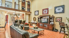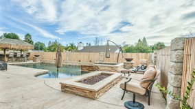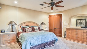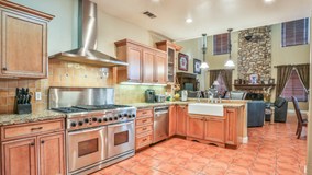 Gorgeous Custom Built Pool Home in 2006 w/3321 sq ft. Paved driveway & front patio. Custom made Alder wood double entry doors. Bottom floor features tiled floors. Huge family room w/20' high ceilings & 20' rock fireplace. Chefs kitchen features solid granite countertops, Kitchen Aid appliances w/ 8 burner stove, built-in refrigerator, double ovens, warming drawer & wine cooler plus pantry, breakfast bar & built-in breakfast nook. Propane heating, cooling & water. Separate dining room-perfect for entertaining. 1 bedroom & bath downstairs. Living, dining, family & master wired for surround sound. Gorgeous Pool with large spa. Contains a huge fire pit and two fire bowls. Built in large bbq with palapa covering. Loft upstairs overlooks family room & features tech center w/ desks. Hardwood floors on stairs, loft & hallway. Master suite features walk-in closet, bath w/jet tub, oversized shower, separate commode area, double sinks & balcony. 1 guest bedroom upstairs features its own bath & access to balcony. Laundry room upstairs. Large deck overlooking backyard w/ views of golf course. Dual heating/cooling system, security system, large 3 car that contains a tandem, ceiling fans & wood blinds throughout. Walk to Road Runner Beach & water, close to main gate.