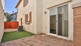 Detached, stand alone home in a planned unit development that is just like a single family residence. Home has been beautifully upkept with upgraded pergo floors, vanity countertops, and brick paved backyard with low-maintenance artificial grass! Kitchen is open to dining area and has lots of storage space inside of the upgraded cabintry. Four spacious bedrooms upstairs with ceiling fans and master bedroom as a very large walk-in closet. Backyard is small, but private, with gated access. View of large park across the street. Community offers 2 large swimming pools, BBQ areas, gym, meeting rooms, etc. HOA fee includes built-in high speed internet. This home is priced to sell and will not last! Don't wait to bring your buyers!!!