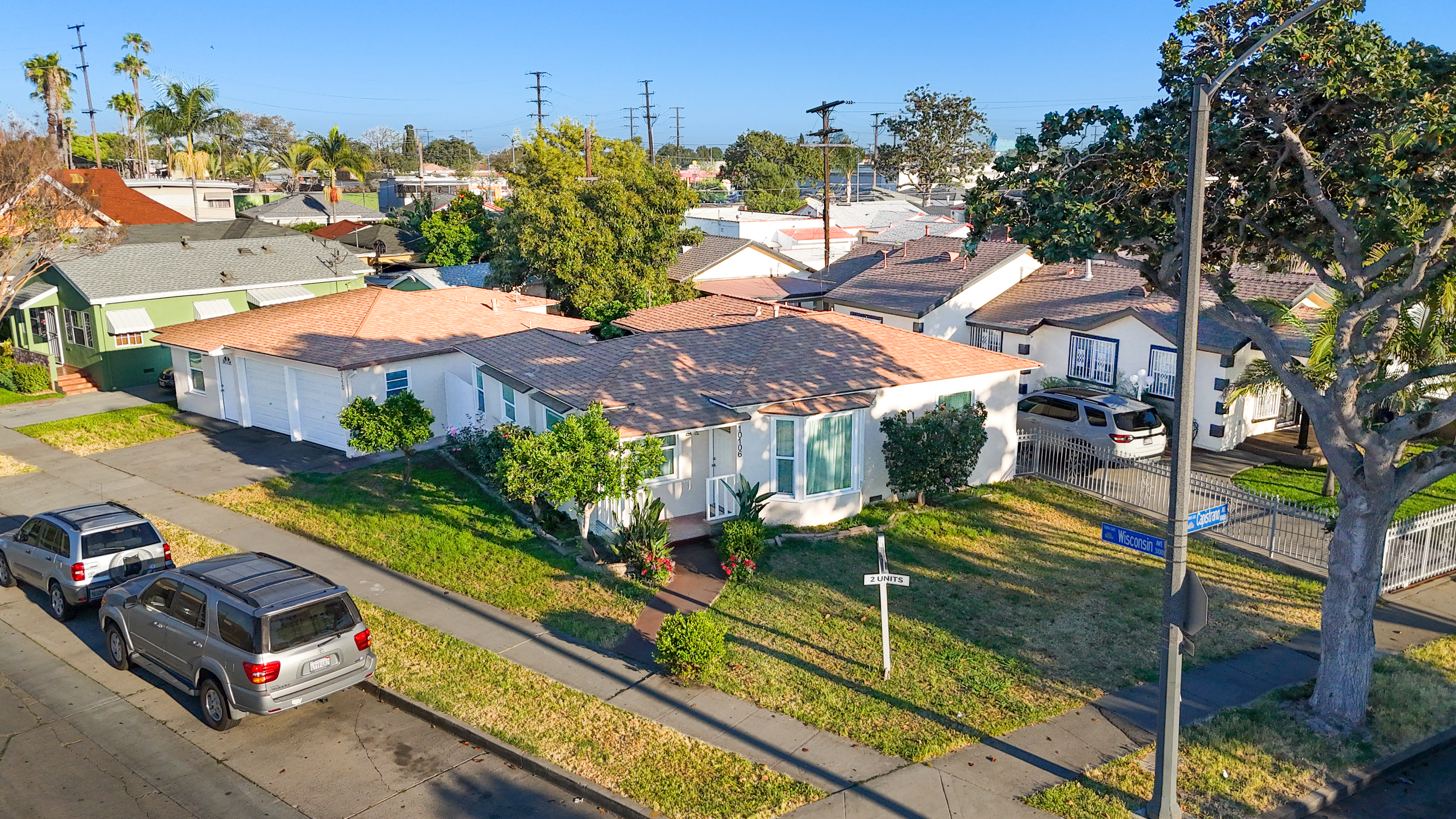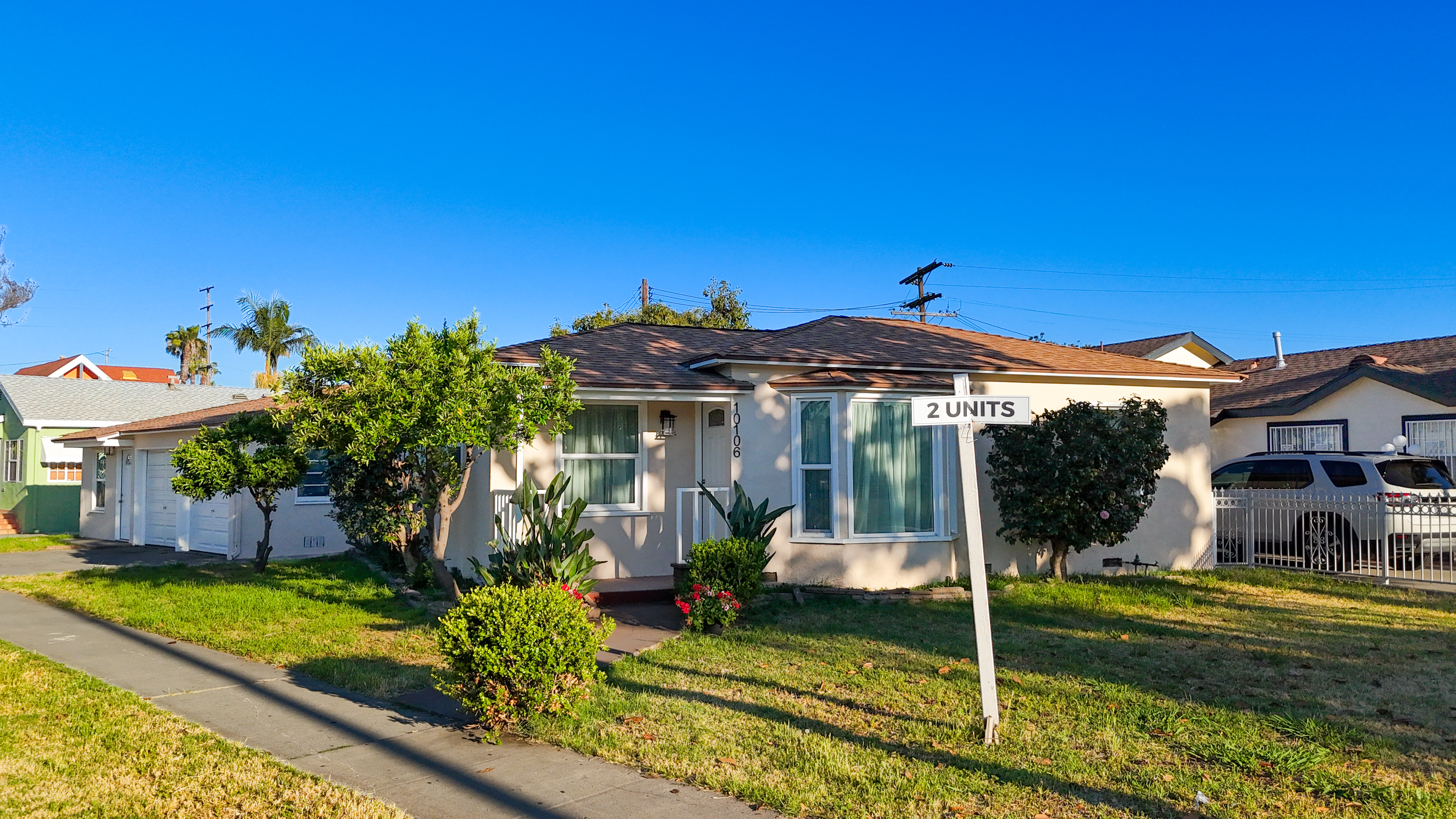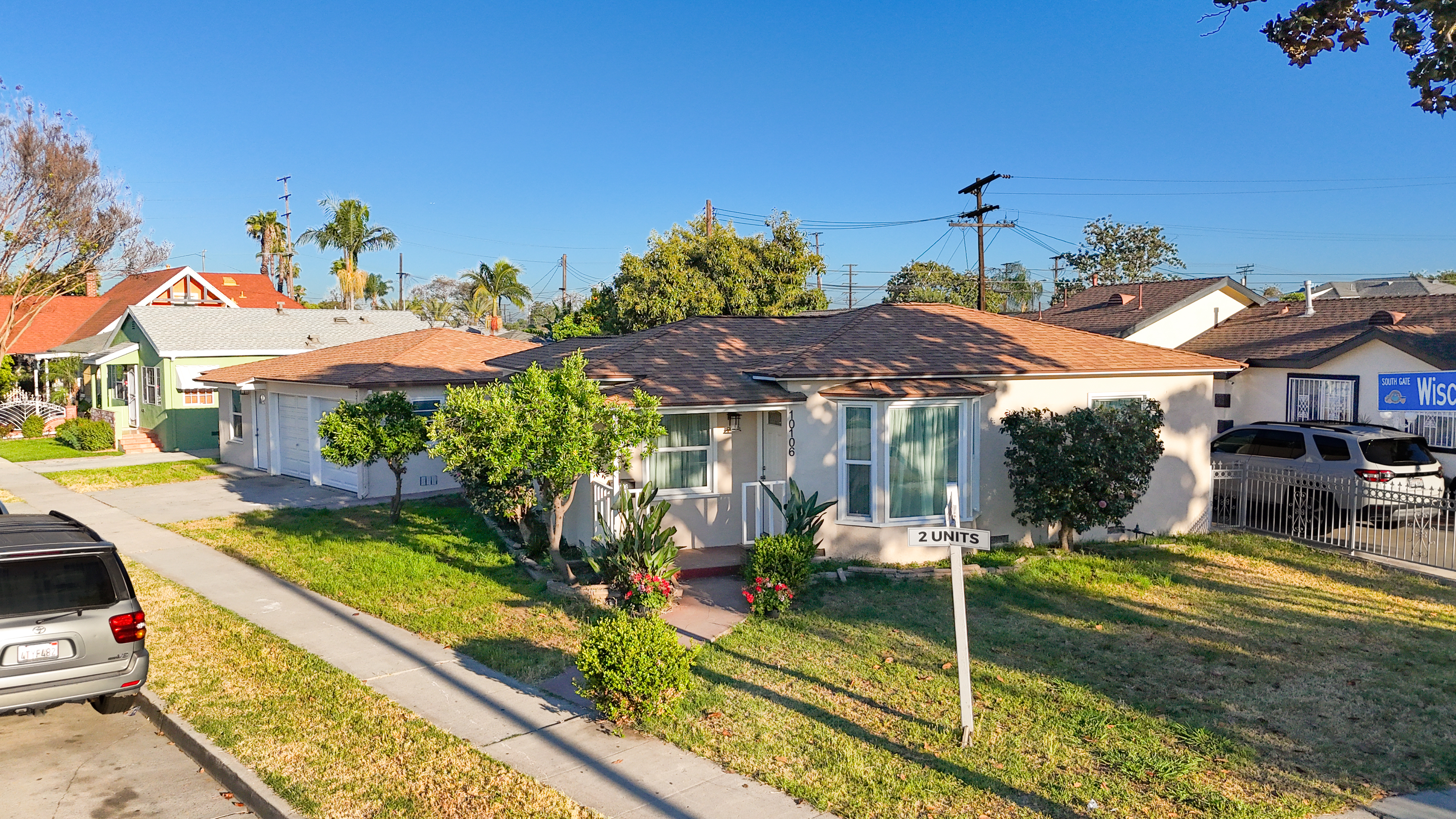 Cozy remodeled, duplex corner home in the city of South Gate. Front house is a 2/1 bedroom and back unit is s spacious I bedroom. Big yard for BBQ's and gatherings, 2 car garage with plenty of space for storage. A total of 4 parking spaces on property. Includes a laundry room and a delicious, avocado tree in yard. Close to freeways and shopping centers. A neighborhood that has a community feel. A must see!