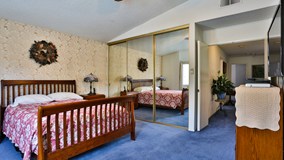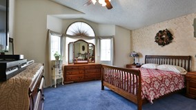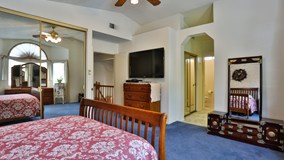 Through the double door entry onto tile floors, you will see the spacious living room with vaulted ceilings. Continue into the dining room, and into the kitchen where you will find tile floors, lots of windows, and a eat-in breakfast area with bench seating along the window with storage underneath. In the corner of the family room is a large brick fireplace giving the room a cozy feel. This open floor plan home makes use of the ample windows with plenty of natural light throughout. A bedroom currently used as an office, full bath, laundry room, and 3-car garage complete the first floor. Up the large curved staircase you will find two more bedrooms, a full bath, as well as the master bedroom which features bay windows, vaulted ceilings, two closets and a large open bathroom. Moving to the backyard you walk out to a large covered patio which is perfect for enjoying summer evenings outside. Past the patio is a large sparkling pool and spa with blue tile boarder. The backyard features a large concrete patio and is prefect for entertaining guests. The back yard includes a hill that currently has many desert plants. Make sure to ask about the secret room! Low Taxes and no HOA help make this home very affordable.