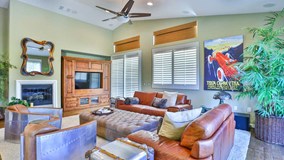 This Invitational three model home is truly unique and outstanding. It is privately situated on a large fully landscaped low maintenance lot. Great views of Golf Course and mountains. Inside the home has hardwood floors, custom window coverings thru out including shutters. Great room has high vaulted ceilings spacious and open floor plan with 2 bedrooms 2 baths plus office/den/hobby room. Kitchen is a gourmet delight with granite counters and full granite backsplash. You must see this highly upgraded home built in 2010 and has NO MELLO ROOS call today