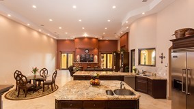 Relax in the comfort of a large open spaced Spanish Style Entertainment Masterpiece. The open floor plan boasts 6000 plus square feet of living space with the fresh feel of newer construction which is greatly appreciated in older established communities.