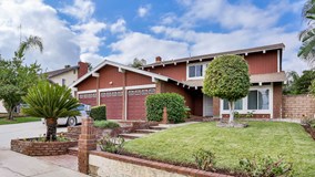Beautiful Two Story 5 Bedroom Home. Nice floorplan with a marble entrance along with beautiful solid cherry wood oak floors. 3 full Bathrooms, Remodeled Kitchen, Custom Back Splash, Beautiful marble floors, Breakfast Counter, Recess lights. Family Room with Raised Hearth Brick Fireplace, Step-Down Formal Living Room & Separate Formal Dining Room. Large Master Bedroom Suite with Dual Closets & High Pitched Ceilings, Main Floor Bedroom & Bathroom Oversized 3 Car Garage with Roll Up Doors & Gated RV Parking. Situated on spacious 8276 sq. ft. lot Fully Landscaped Backyard with Dual Covered Patio's, Block Walls, Large Storage Shed, Dog Run & Lots of Fruit Tree's Including Avocado, Orange, Plum, Lemon, Lime, Apple, Guave, Mandarin, Banana* Great Curb Appeal with Red Brick Planters, Accent Lighting & Beautiful Mature Landscape. Central Location & Minutes to Parks, Schools, Shopping, Restaurants/Dining & EZ Access to the Freeways