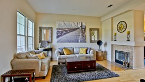 Views, views, VIEWS! This beautifully maintained Tustin Ranch tri-level townhome is a 4 bedroom, 2.5 bathroom home with unobstructed views of the mountains and golf course. Step into your beautiful living room with hardwood flooring and 2 way fireplace. The formal dining area is currently designed as a library and sitting area. The same beautiful wood flooring flows into the kitchen and eating area. The kitchen features crisp white tile countertops and dark mahogany cabinets, recessed lighting, under cabinet lighting, and built in microwave. The eating area features the same 2 way fireplace and lots of natural light from the balcony, perfect for barbecuing. The Head downstairs to the bonus room that could be used as a 4th bedroom, man/woman cave, office, etc. and has direct garage access. Head back upstairs to the master bedroom that is light and bright and has the best view of the golf course and mountains from the private balcony. The master bedroom also features 2 mirrored closet doors. The master bathroom has dual sinks and separate shower and tub. The remaining 2 bedrooms are spacious and share the second bathroom. The association is Tustin Del Verde and features amenities such as a pool, spa, security patrol as well as water and trash utilities. This home is conveniently located close to the 261 Toll Road and 5 Frwy. The home is also close to the Tustin sports park, Tustin Ranch Elementary and shopping.