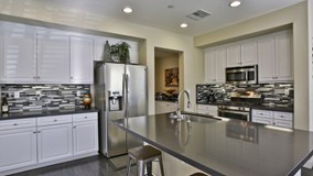 Pristine home in gated Villa Metro community! This great 3 bedroom and 3 bath home built in 2014 has a lot to offer. Downstairs features an open and bright floor plan with living room, kitchen and dining area. Sliders from living room lead to a hardscaped patio area with gas and electrical connections. A beautifully upgraded kitchen with Quartz counter top, large island, glass tile backsplash, fresh white cabinets with brushed nickel knobs, under cabinet lighting, and stainless steel appliances. Also, coveted bedroom and a full bath downstairs. Upstairs a spacious Master Bedroom with a large walk-in closet. The master bath features Quartz counter top, glass backsplash, double sinks and shower with glass doors. Also, upstairs a Jr. Master bedroom with their own beautifully upgraded full bath and a Juliette balcony. Other features are window and door casings, recessed lighting, 4-inches upgraded baseboards, elegant laminate flooring, upstairs laundry closet, modern ceiling fans, elegant white 2- panel doors, a tankless water heater, a 2- car garage with direct access and automatic garage door openers. This is a great community with tons of amenities. These include: Club house, Pool and Spa, Playground, Picnic areas with BBQ, community garden, and access to an overhead bridge that connects to the Metrolink Train Station. Also behind the community there is a bike trail and a walk path with view of the mountains. This is a prime location in the heart of Santa Clarita Valley!