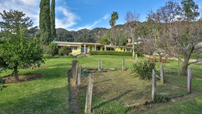 Set back from the street on an incredibly peaceful & private 20,000+ SF lot accessed by a long driveway, this light-filled 3 + 1.75 Mid-Century time-capsule lives large thanks to spacious rooms & an open floorplan. Original details abound including the kitchen's built-in banquette and family room's beamed ceilings & stone fireplace, and walls of glass look out to verdant grounds and afford panoramic views of the mountains & city, including the downtown LA skyline. In addition to rolling lawns, the grounds feature a pond shaded by mature pine trees, an abundance of flowering shrubs & fruit trees, and a fenced vegetable garden. On the market for the first time in 50+ years, this well-kept property was the long-time home of a beatnik-era chemistry professor & music columnist celebrated by Altadena Heritage in 2009, his wife, a potter, and later, her sister, a biologist at the LA Arboretum, and presents a rare opportunity to restore or update and enjoy the sunsets for many years to come.