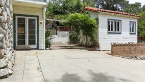 Located on the most coveted street in Sierra Madre, Alegria is known as the infamous "Halloween Street". Tucked away up the stone driveway you will find this vintage charmer, plus a guest house built in 1910. Step onto the covered front porch and and enjoy the privacy of the trees protecting the home. In the living room you will find the original wood beam ceiling and original wood floors. The stone fireplace is surrounded by built-in cabinets with stained glass doors. The bay window has original windows and overlooks the front yard. Just off the kitchen is the dining room with a lighted stain glass window. The family room has the original wood paneling, original tile floors, and a coved ceiling. French doors lead to the outside and there is access to the basement with extra storage space. In the kitchen you'll find the original cabinetry and tile counters and is attached to the breakfast room that was used recently as a laundry room. (Laundry is now in the garage where it was originally) Tucked under the custom wood staircase is a half bathroom. Three spacious bedrooms with wood floors are upstairs. The charming bathrooms have original vintage tiles. The master bathroom has a separate tub and shower. There is a guest house on the property with a 3/4 bathroom that is approximately 212 square feet included in the total square footage. Two detached garages offer plenty of storage. Don't miss the fruit trees, lemon, orange,fig, pomegranate, guava and grapefruit. Walk to the shops on Baldwin Avenue in a few minutes and enjoy the excellent schools. Mountain trail heads are within walking distance to the property. This is a opportunity not to be missed.