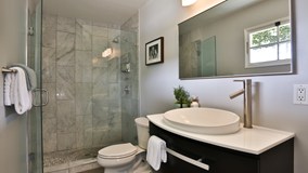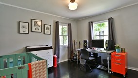 Charming 2 bed-2bath designer home in California Heights! Contemporary with touches of traditional design. The large living room has a gas fireplace, original crown molding and new recess lighting. Refinished ebony hardwood floors throughout and a custom chandelier hovers the dining room area. The new French doors lead you to a shady wood deck perfect for bbqing with steps to the enormous fenced and private backyard. The kitchen is fit for a chef. Remodeled with white shaker cabinets, white Carrara counters, beveled subway tile backsplash, recessed LED lighting, stainless stove and Bosch dishwasher. Master bedroom has inside laundry, large closet space and newly added bath with Carrara shower surround and espresso vanity. Second bedroom has a large walk-in closet neighboring the second newly remodeled bathroom. The home has upgraded plumbing and central A/C and a detached 2 car garage.