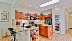 FORMER MODEL HOME AT THE END OF A CUL DE SAC WITH CITY LIGHTS VIEW. LOCATION IS EVERYTHING! YOU CAN WALK TO THE CLUBHOUSE DOWN THE WALKING PATH FROM THE CUL DE SAC. $63,000 IN UPGRADES: STONE WALK WAY TO THE FRONT DOOR WITH INVISIBLE SCREEN DOOR, ALL DOORS ARE ARCHED, WOOD LOOK LAMINATE FLOORING WITH UPGRADED CARPET, 2 SETS OF FRENCH DOORS OUT TO THE BACKYARD FROM THE MASTER BEDROOM & OFFICE WITH BUILT IN DESK, MARBLE FIREPLACE, WAINSCOTING, CUSTOM WINDOW COVERINGS, CEILING FANS, CROWN MOLDING, NUTMEG STAIN BIRCH WOOD CABINETS THROUGHOUT, KITCHEN CABINETS HAVE GLASS DOORS WITH UPGRADED HARDWARE, SILESTONE COUNTER TOPS & KITCHEN ISLAND, GLASS PANTRY DOOR, SKYLIGHT, UPPER CABINETS & SINK IN THE LAUNDRY ROOM, BOOKCASE BUILT IN IN THE FAMILY ROOM, INSULATION IN THE WALLS & CEILING OF THE GARAGE WITH BUILT-IN CABINETS & WORKBENCH. BACKYARD HAS VINYL PATIO COVER OVER THE BACK OF THE HOME, PATIO HAS REAL STONE RIBBONS & HOME HAS RAIN GUTTERS. 55+ ACTIVE COMMUNITY !!!